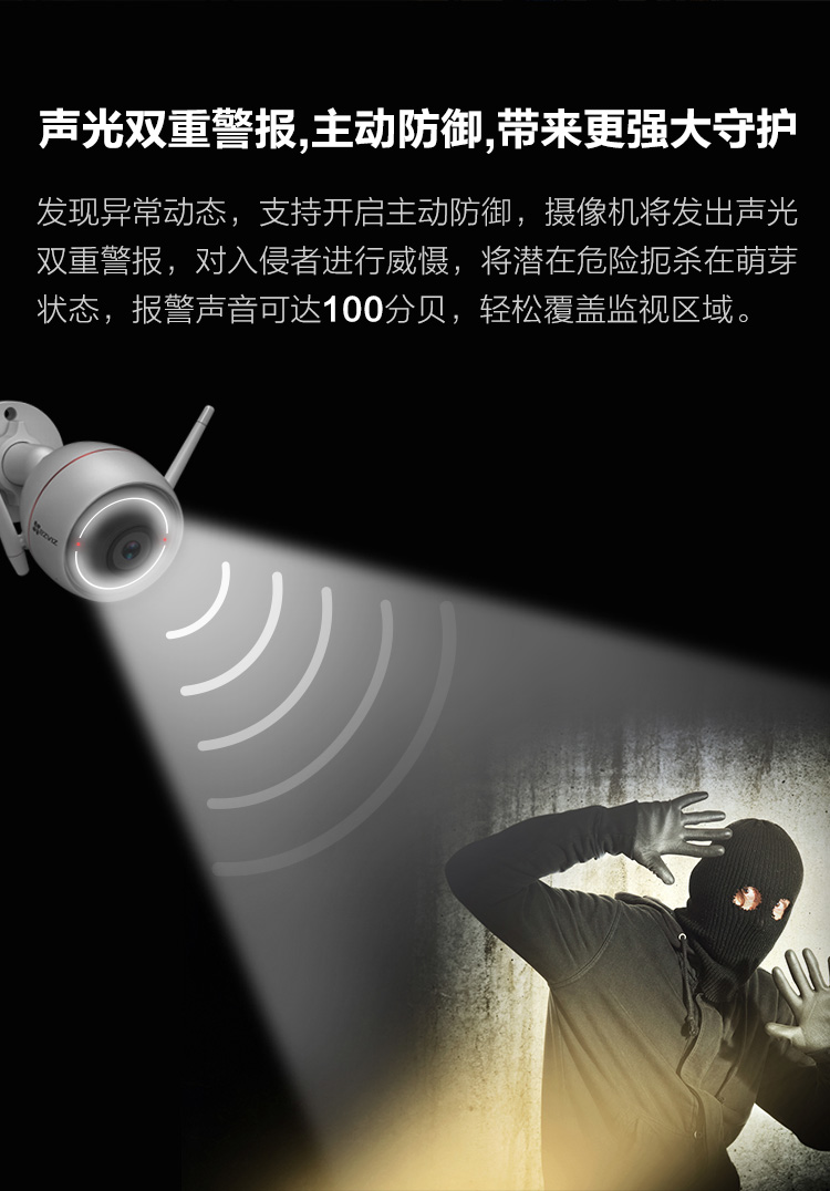 聲光主動防御,具有震懾作用
